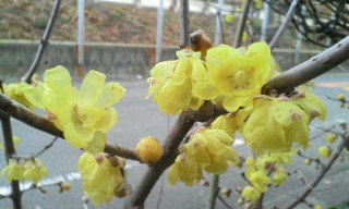 家の庭で蝋梅が咲いている。黄色くて可愛い。
